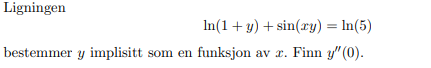 [tex]\ln(1+y)+\sin(xy)=\ln(5) \\[/tex]
