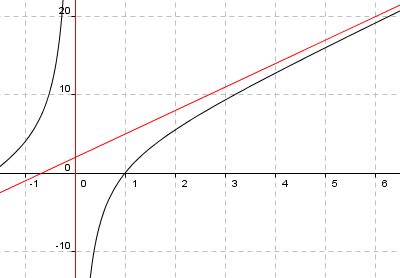 Vi ser at grafen har en vertikal asymptote for x = 2 og en horisontal asymptote for y = 1.