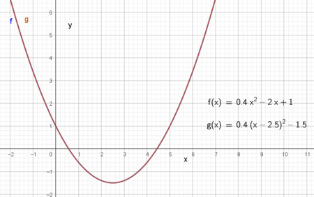I \[ f(x) = 0,4x^2 -2x +1 \]