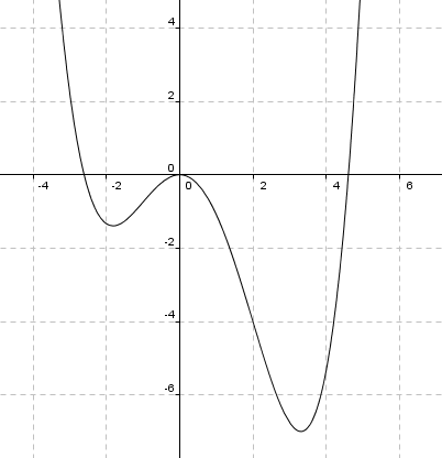 <math>f(x) = \frac{1}{12}(x^4-2x^3-12x^2)\\ f'(x) = \frac 13 x^3 - \frac 12 x^2 - 2x \\f(x)= x^2-x-2</math>