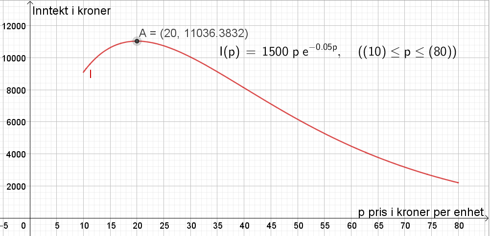 Den prisen som gir høyest inntekt er 20 kroner per enhet.