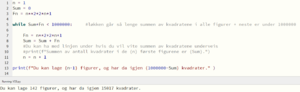• Regner ut antall figurer på figur nr. n, ved å bruke formelen over