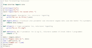 Når vi programmerer ønsker vi ofte å hente informasjon fra brukeren (inn-data), gjøre noe med den, og vise resultatet (ut-data). I Python bruker vi blant annet funksjonene input() for å ta imot data og print() for å vise data.