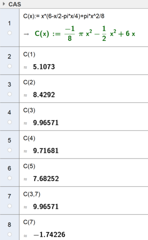$y= \frac{ 12-1- \frac{\pi}{2}}{2} = 4,7$ meter.