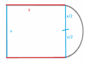 Areal: $A = xy + \frac 12 \cdot \pi \cdot (\frac x2)^2 = 1 \cdot 4,7 +\frac 12 \cdot \pi \cdot (\frac 12)^2 = 5,09 $