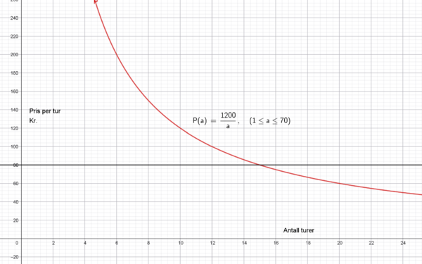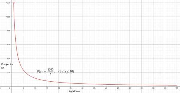 Pris per tur blir: $turpris = \frac{1200}{antallturer}$