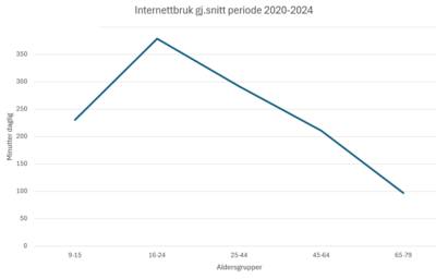 Vi må altså 273,5 personen "inn" i det andre intervallet og det går ca. 11,2 personer på hvert år. Det betyr at vi skal 24,5 år inn i intervallet som starter med 18 år. Det gir oss en alder på 18år + 24,5år = 42.5år. Det betyr at medianalderen i Åseral trolig ligger i området 42- 43 år.
