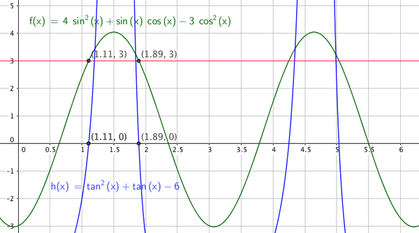 Dersom <math>x</math> ikke befinner seg i disse mengdene, vil du likevel få en verdi innenfor disse mengdene. Ha dette i bakhodet når du løser trigonometriske ligninger på kalkulator.