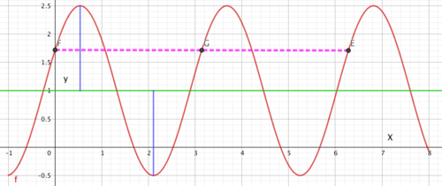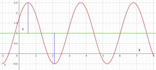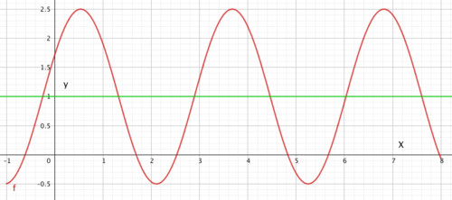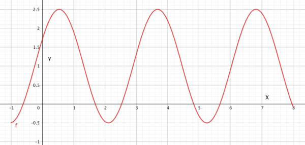 Funksjonsutrykket ser slik ut: $f(x)= \frac 32sin(2x+ \frac{1}{2}) +1$