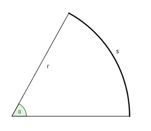 Vi konstruerer en sirkelbue med lengde <math>s</math> og radius <math>r</math>, som vist på figuren. Buen er avgrenset av de to radiene som går fra sentrum av buen. Vinkelen mellom de to radiene i radianer er da definert som