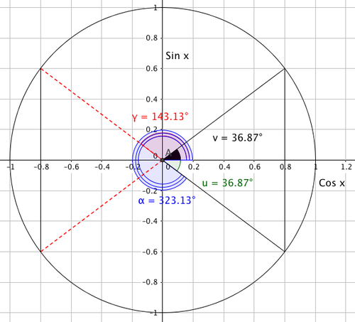 - Dersom en vinkel har høyre vinkelbein sammenfallende med positiv del av x aksen og toppunkt i origo sies vinkelen å være i grunnstilling.