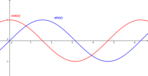 Når vi plotter sinus- og cosinuskurvene ser de slik ut: